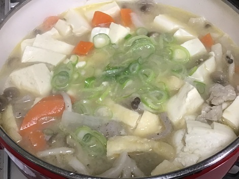 にんじん 大根 こんにゃく 豚肉 豆腐 油揚げ ごぼう ぶなしめじ ねぎの豚汁