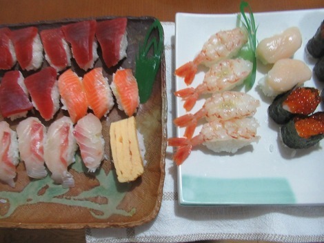 夫のお寿司です。 握りたてなので美味しいんです。息子もパクパク♪