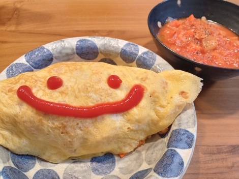 夫不在の夕飯、子どもたちの好きなオムライスでした(^^)✋今年初のオムライスかな♪