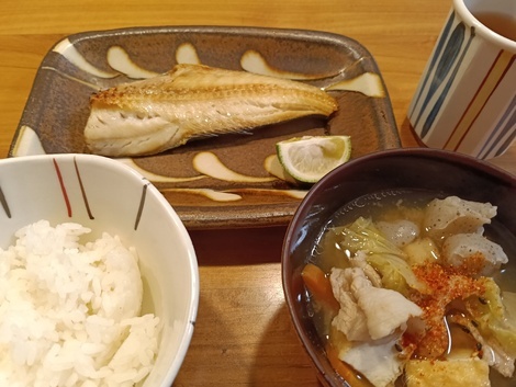 昨夜は豚汁に焼きホッケ(⁠^⁠^⁠)❤️ホッとする秋の食卓でした〜!実家から届いたすだちも絞って…美味しかったです♪