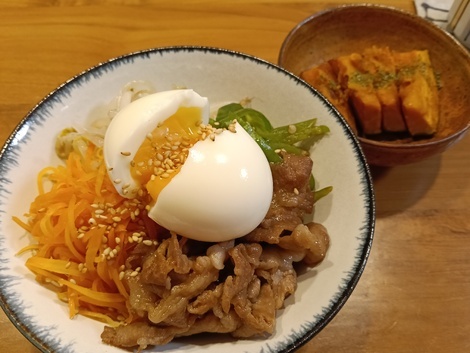 昨夜はビビンバ丼❤️野菜ナムルに半熟卵…大満足でした(^^)