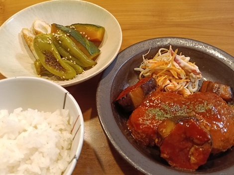 昨日は娘のリクエストで、また煮込みハンバーグでした(^^)焼きナスも一緒に煮込んで、トロトロでした❤️