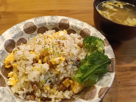 納豆チャーハン~ブロッコリーも添えてあり😊