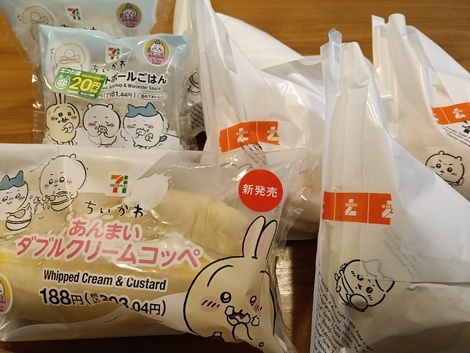 昨日はランチに、セブンイレブンでちいかわコラボ商品を(⁠^⁠^⁠)❤️どれも可愛くて〜子どもたちとワイワイ選びました!