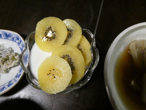 ヨーグルトにキウイを乗せて食べました(^m^)/