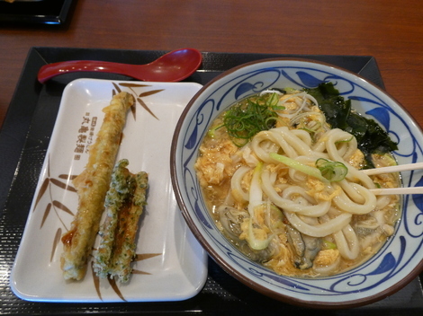今日のお昼は、うどんのチェーン店で牡蠣玉うどんを食べました(^m^)/