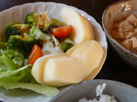 お昼に、サラダにリンゴを乗せて食べました(^m^)/🍎