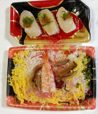 たいらぎ貝の握りと散らし寿司を食べました。