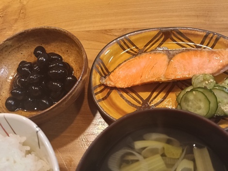 昨夜は塩鮭を焼いて(^^)黒豆煮はお義母さん手作りのものを頂きました❤️毎年この季節になると頂くのが楽しみで…♪