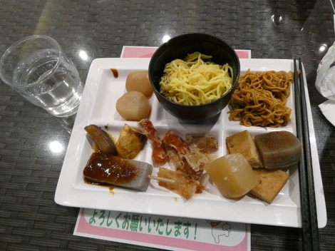 コンニャクの煮つけ・ラーメン・焼きそば、みそ田楽、コンニャクステーキ・唐揚げ、マンゴーゼリーを食べました😋