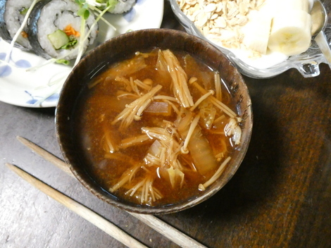 今朝は、エノキと白菜の味噌汁でした😋