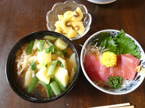 今日のお昼は、赤べ〇ラーメンと、ミニ鉄火丼、キウイを食べました👌