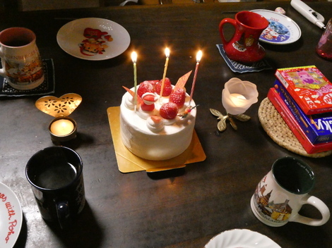 家は、娘がケーキ屋さんに予約しておいてくれたらしいですが、ケーキがあることを知らなかった私は、夕飯でお腹いっぱいだったのでケーキはちょこっとしか食べられませんでした😂