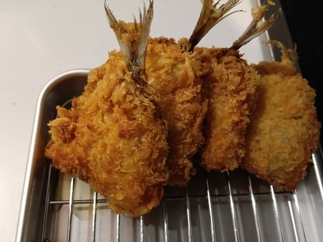 夕飯にアジフライを揚げました(^^)