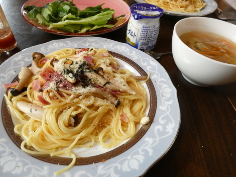 10:30コーヒー13:00焼き芋2本20:00豚しゃぶサラダ、茄子とピーマンの甘漬け、スペアリブの山賊焼き、チキンの照り焼き