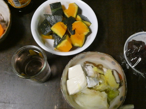 今夜は、タラ鍋、カボチャなどをつまみながら晩酌しました😋