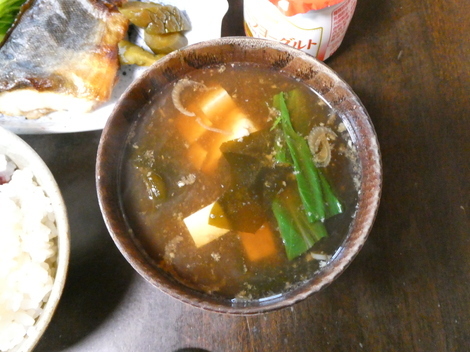 妻が季節の野菜などを使ったおいしいみそ汁を作ってくれます。