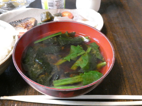 今朝は、ほうれん草とワカメの味噌汁(インスタント)でした😋