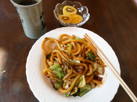 今日は、焼きそば(なみえ焼そば)、キウイを食べました😋