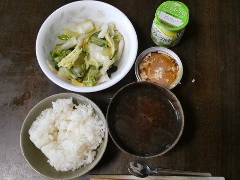 今朝は、白菜の漬物、ヨーグルト、牛肉の缶詰、しじみの味噌汁で朝ごはんを食べました😋