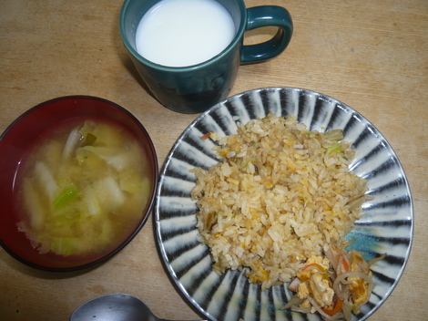 炒飯、味噌汁、ミルク