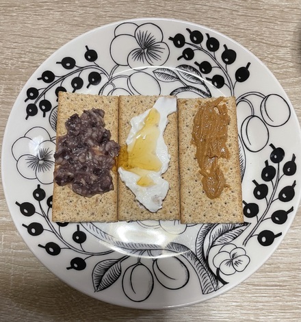 全粒粉クラッカー、塩麹ヨーグルトクリームとはちみつ、発酵あんこ、オリゴ糖きな粉