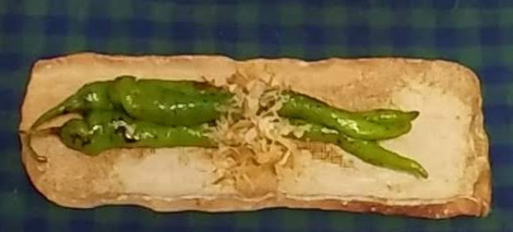 万願寺唐辛子。一般の青唐辛子より大きめですが種も辛くありません。焼いて鰹節と醤油を掛けて食べます。