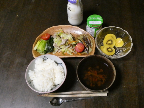 今朝は、小松菜、ミニトマト、野菜炒め、ワカサギのつくだ煮、キウイ、ヨーグルト、牛乳、なめこの味噌汁で朝ごはんを食べました😋