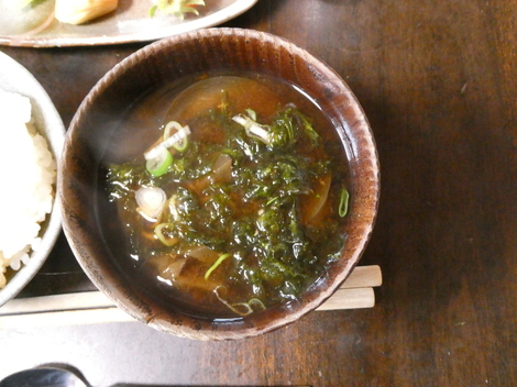 ナスと豆腐の味噌汁にアオサなどを入れました(^m^)/