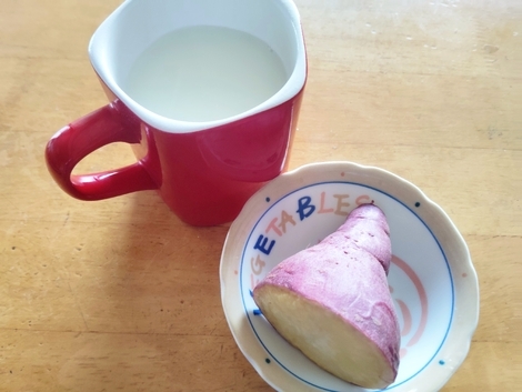 10:30コーヒー13:00焼き芋2本20:00豚しゃぶサラダ、茄子とピーマンの甘漬け、スペアリブの山賊焼き、チキンの照り焼き