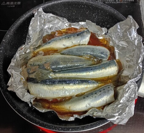 立派な鰯が半額だったので丼に付いてきた生姜と一緒に煮付けました。