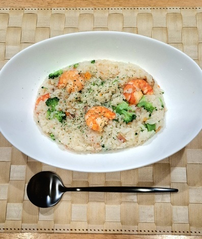 今夜は買い物に行かなかったので、家にある食材でエビピラフを作って食べました🦐