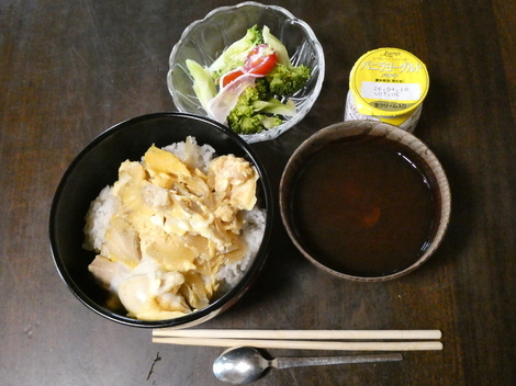 今朝は、ブロッコリーのサラダ、ヨーグルト、シジミの味噌汁で親子丼を食べました😋