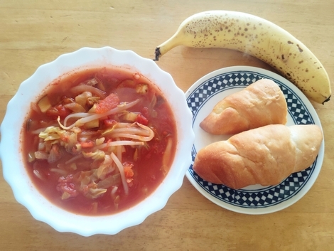 10:30コーヒー13:00焼き芋2本20:00豚しゃぶサラダ、茄子とピーマンの甘漬け、スペアリブの山賊焼き、チキンの照り焼き