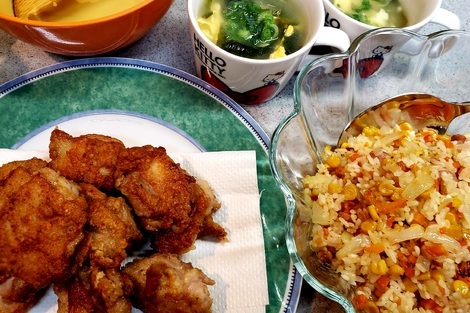 から揚げとピラフとスープです🐭🎈