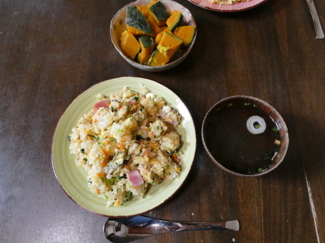 今日のお昼は、チャーハン、カボチャなどでした👍