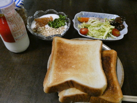 今朝は、牛乳、ヨーグルト(🍎ジャム、茎ブロッコリー、オートミール入り)、ミニトマト、刻みキャベツ、ニンジンとアスパラガスの肉巻き、マグロのつくだ煮、トーストを食べました👍