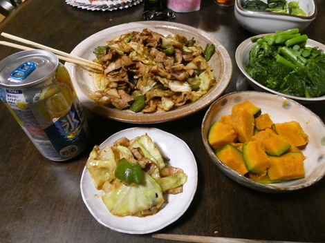 今夜は、回鍋肉、かき菜、カボチャなどで晩酌をしました😋