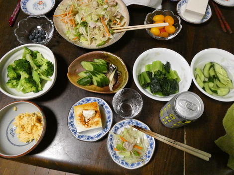 昨夜は、野菜炒め、ブロッコリー、キュウリとミョウガのぬか漬け、小松菜、キュウリの浅漬け、冷奴などで晩酌しました😋