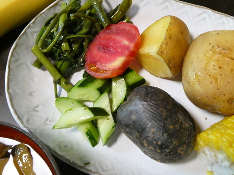 今朝は、空芯菜炒め、🍅トマト、キュウリ、じゃが芋などを食べました(^m^)/