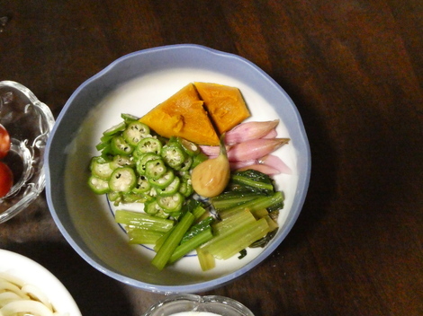 今朝は、オクラ、カボチャ、小松菜などを食べました😋