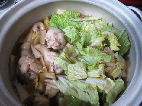 鶏鍋、〆は玉子雑炊です。デザートはりんごと柿。