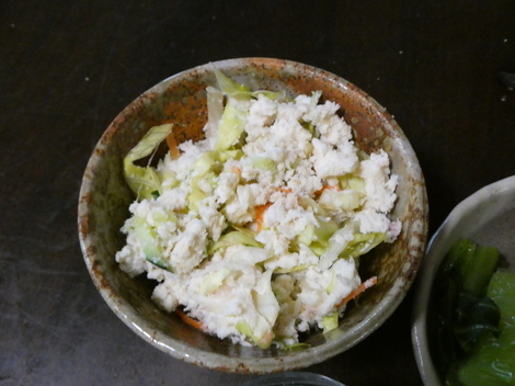 家庭菜園で採れた野菜でサラダを作りました。トマトは買いました。