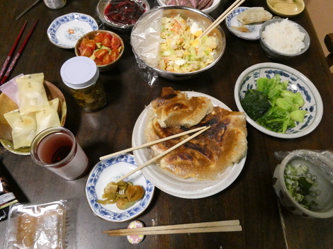 今夜は、アボガドとミニトマトのサラダ、ポテトサラダ、小松菜、餃子、プチカマボコ、にんにくのしょうゆ漬けなどで晩酌しました😋