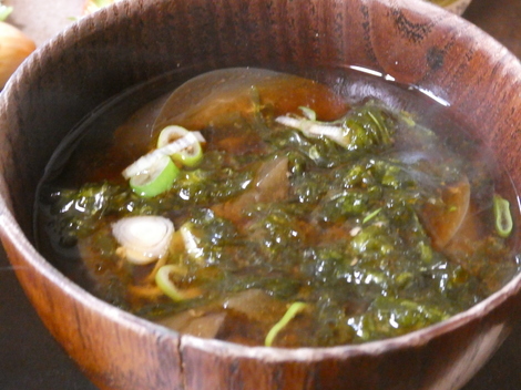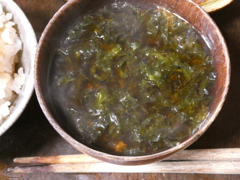 ナスと豆腐の味噌汁にアオサを入れました(^m^)/