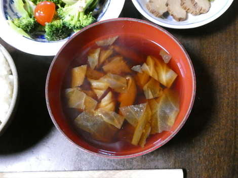 妻が季節の野菜などを使ったおいしいみそ汁を作ってくれます。