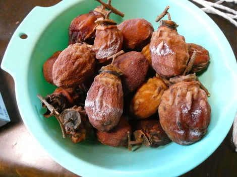 11月11日にご近所からいただいた渋柿が、北風にあたりいい感じに