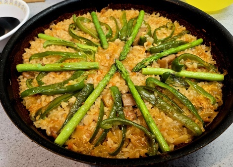 パエリアの缶詰が長いことストックされていたので使ってみたのですが、具がいらないと書いてあったので、緑だけ入れたのですが、ちょっと寂しい感じ(;^_^A