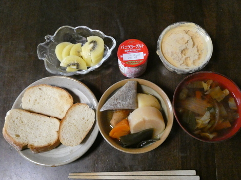 今朝は、焼き芋を入れたヨーグルト、おでんでした👌