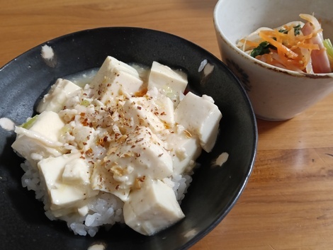 鮭ときのこのトマト煮・温奴・鶏ひき肉と油揚げともやしのサラダ